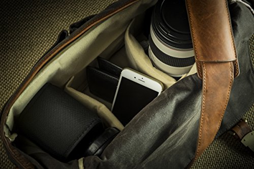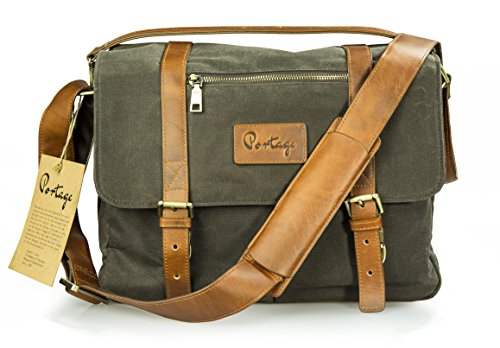 -. Binding : Electronics -. Brand : Portage Supply Co. -. Color : Charcoal -. EAN : 0799207052416 -. Feature : Larger Size for 15" laptops, Handcrafted with premium waxed canvas, a vintage method of waterproofing used by mariners as early as the 1600's. / Secure antique brass tuck-clasp closure keeps your valuable contents safe / 100% Genuine Oil Pull leather - has a vintage look and can have dark areas that will change as the leather wears. Oil pull leather is coveted for its resilience and self healing nature. It ages beautifully over time. / Side weather flaps to protect your gear. Internal dividers are removable, and are padded for protection of your items. / Room for a camera, two lenses, 15" laptop, tablet, surface, iPad. Large enough for most professional lenses. -. Label : Portage Supply Co. -. Manufacturer : Portage Supply Co. -. Model : 5772391 -. MPN : 5772391 -. PackageQuantity : 1 -. PartNumber : 5772391 -. ProductGroup : Personal Computer -. ProductTypeName : CARRYING_CASE_OR_BAG -. Publisher : Portage Supply Co. -. Studio : Portage Supply Co. -. Title : New Larger Size Portage Supply, Leather Waxed Canvas Messenger Bag for Camera, 15" Laptop -. UPC : 799207052416
