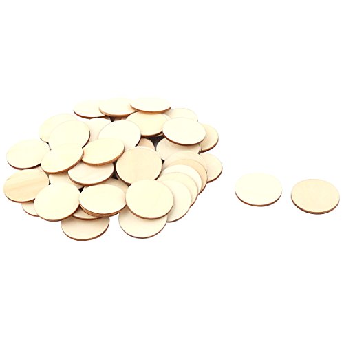 uxcell Wooden Slices Round Shape DIY Gift Craft Decor Accessories Embellishment 40mm Dia 60pcs Beige