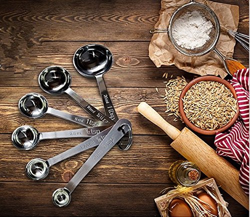 Senswalan Stainless Steel Measuring Spoon Set of 6 pcs for Baking and Cooking Including 1/2 Tablespoon and 1/8 Teaspoon Measuring Spoon