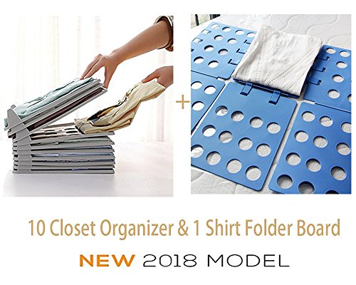 Shirt Folder and Organizer for Closet, Space saver T-shirt Stacker Organizer, 10 Pieces of Organize Boards and 1 Folding Board Set