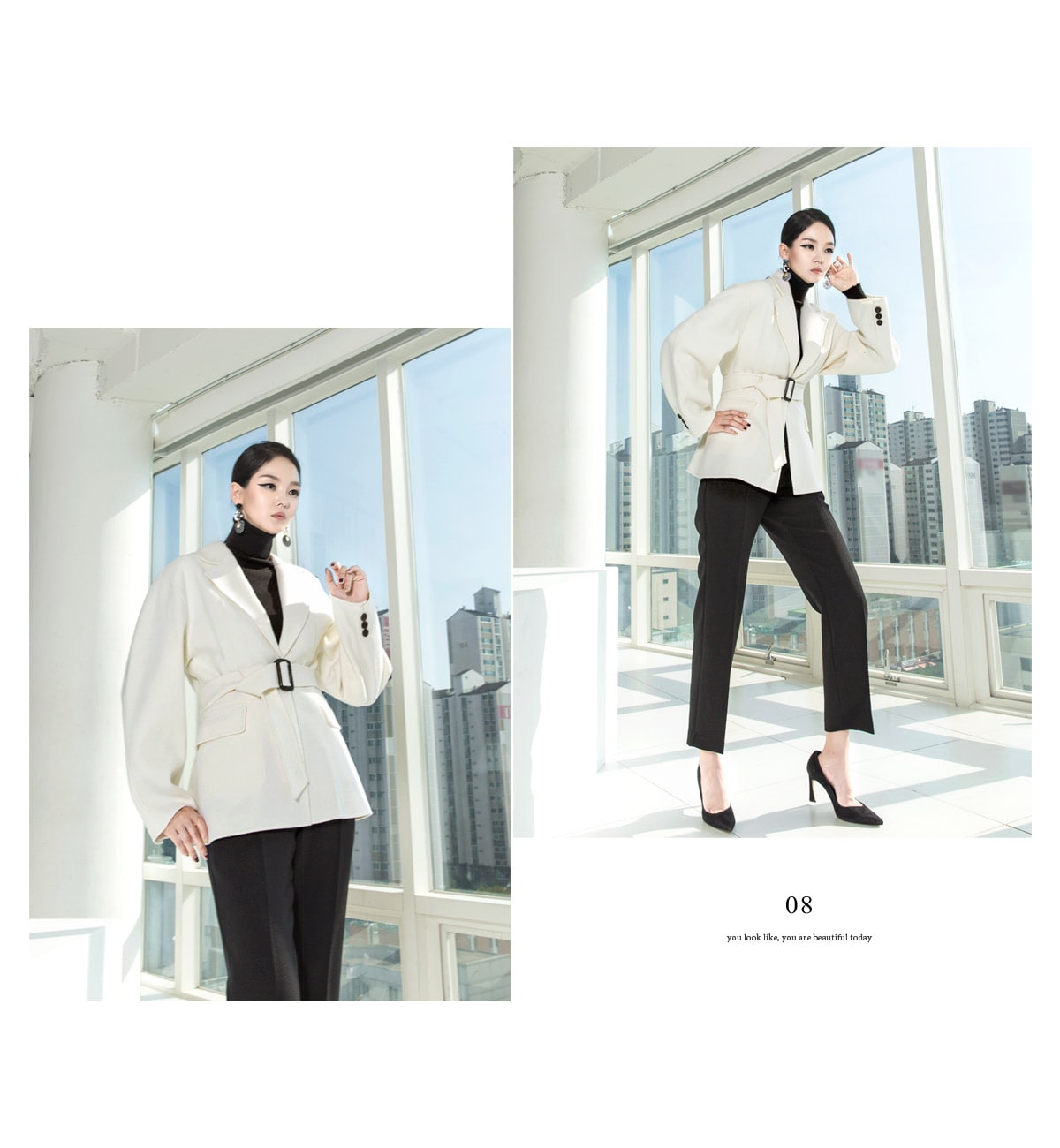 J-4696 리보트 볼륨 자켓(벨트set) Ivory