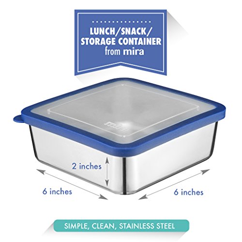 MIRA Stainless Steel Lunch Box Food Storage Container | BPA Free, Eco-Friendly, Reusable Sandwich Box & Snack Container | For Kids & Adults | 6 x 6 in | Transparent Lid