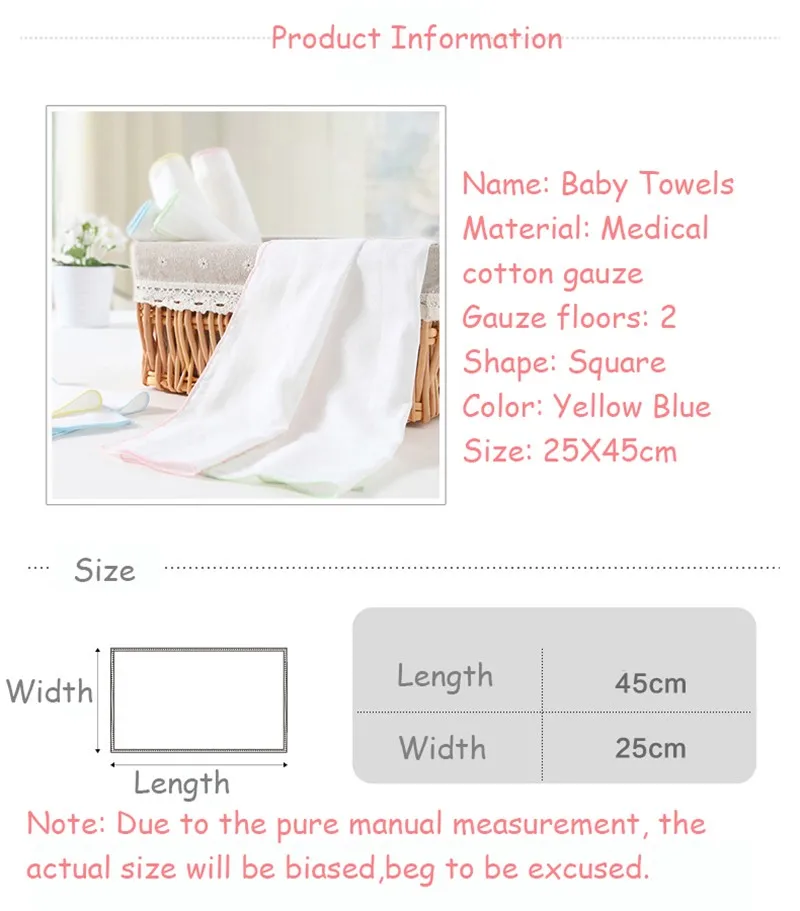 Size: 25x45cm Soft Baby Guaze Washcloth