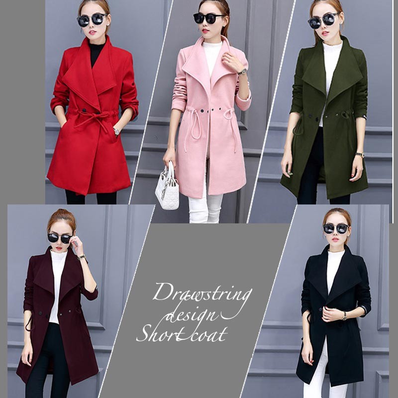 シンプルなフォルムのドローストリングデザインショートコート♪