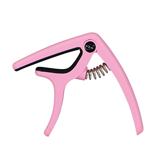 Product Description Feature:* The capo has a great performance for all kind of guitar,can clamp firmly onto most fretboards without buzz or loss of tuning.* With smooth surface and ergonomic handle,it is made of high quality PVC Plastic, lightweight but durable.* Strong spring is made of stainless steel,with great acid resistance,will help hold all of the strings down.* Soft silicone padding helps to protect the strings and fretboard without compromising on the quality of pitch and tone.* Easy to use,quickly and easily released and repositioned without disturbing the tuning. Can be repositioned with just one hand.Specification:Fits for all kind of electric, acoustic and classical guitarMaterial: High Quality PVC Plastic Handle, with steel spring soft silicone pad.Color: PinkPackage include:1 x Packaged Guitar Capo 0
