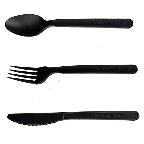 HLJgift Cornstarch Disposable Cutlery 150 pc set: 50 Forks, 50 Spoons, 50 Knives, 7" Length Eco-Friendly, Biodegradable, Compostable Utensils