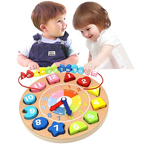 Wooden Teaching Clock, learn to tell the time. With this shape sorter clocks, children can learn shapes.