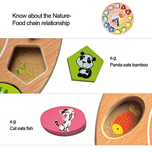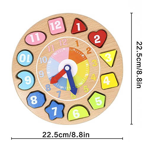 Teaching clock This preschool-friendly clock features color minute and hour hands that spin around with a simple push,but no matter where they point,it's always time for learning and fun.Kids can match the colors,animals,sort the shapes ,and play puzzle games.helping children to master early learning concepts as they gain familiarity with the form of a clock.
