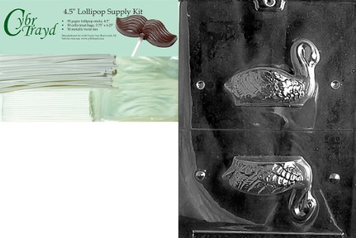 Cybrtrayd "Small 3D Dessert Swan" Wedding Chocolate Candy Mold with Packaging Bundle, Includes 50 Cello Bags and 50 White Twist Ties