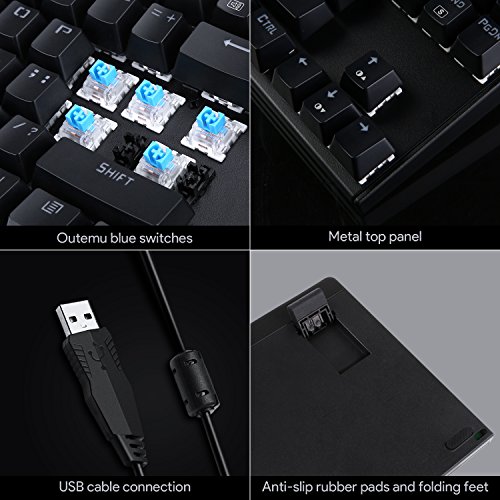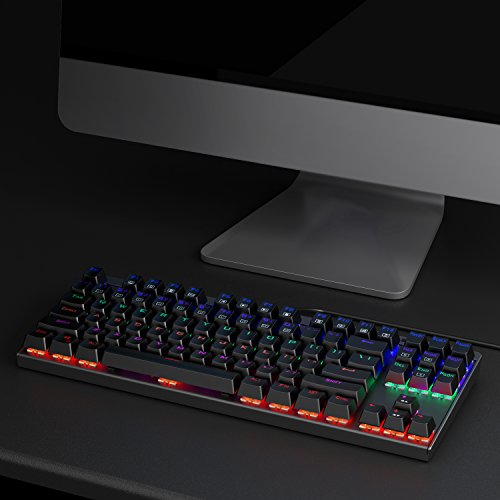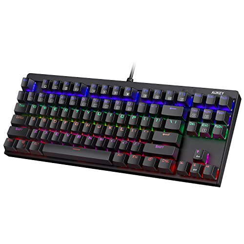 -. Title : AUKEY Mechanical Keyboard LED Backlit Gaming Keyboard with Blue Switches, 87-Key Metal Plate Anti-ghosting for PC and Laptop Gamers