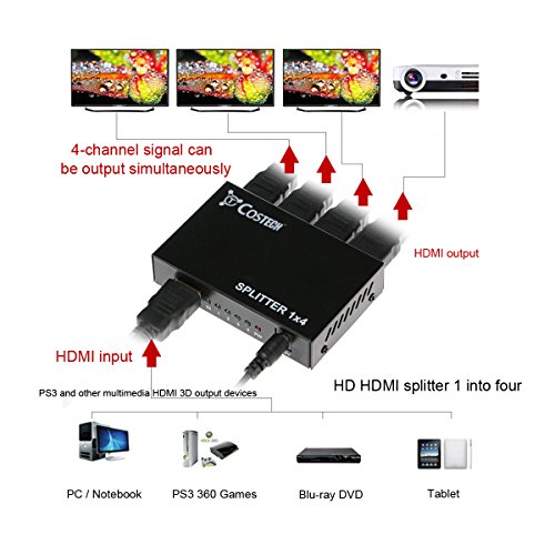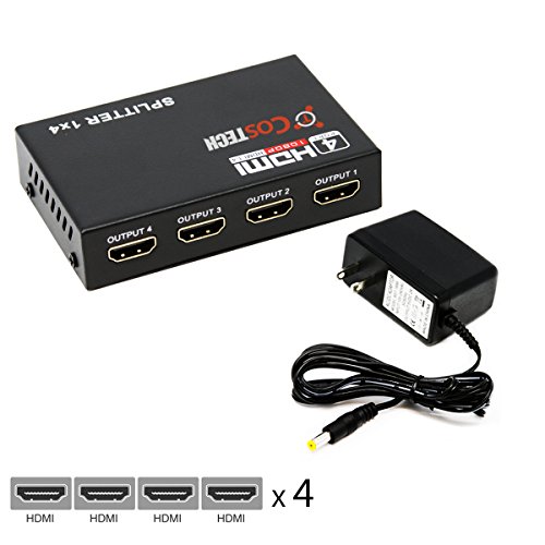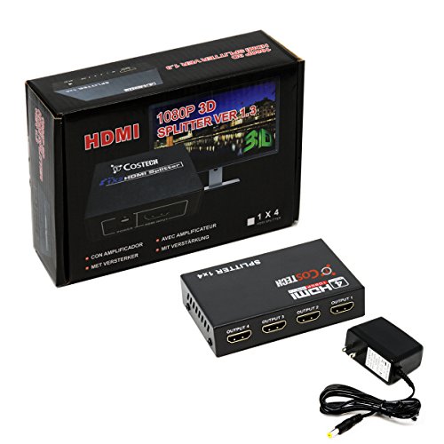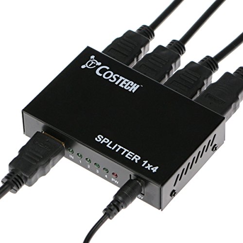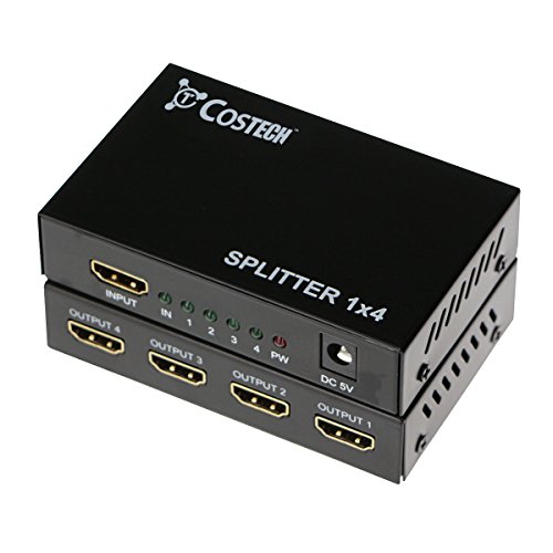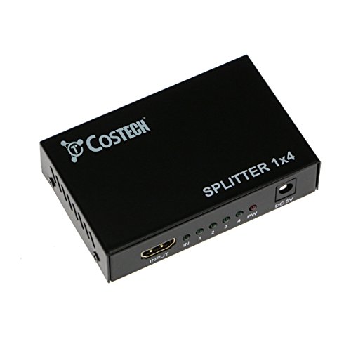Studio : Costech Publisher : Costech Binding : Electronics Product Description Product Description HDMI Splitter 4 Port Powered Amplifier for Full HD 1080P/ 3D Support PS3 Xbox Blu-ray DVD (One Input To Two Outputs) HDMI 1.3 HDCP1.0/1.1/1.2; This Model Doesn't Support CEC It offers solutions for HDTV retail and show site, HDTV, STB, DVD and Projector factory, noise, space and security concerns, data center control, information distribution, conference room presentation, school and corporate training environments. The heavy-duty cool metal enclosure protects the insides and keeps the unit cool by aiding in quick heat absorption and dissipation. 4 x HDMI Outputs supporting up to v1.4a 1 x HDMI Input supporting up to v1.3b and 1080p EIDI Duration: 6 seconds Specification Product Type: HDMI 1x4 Splitter Interface Type: 1 HDMI in,4 HDMI out Power Supply: DC 5V (included) Operating Frequency: Up to 225MHz Package included: HDMI 1x4 Splitter x 1 5V AC Power Adapter x 1 User Manual x 1