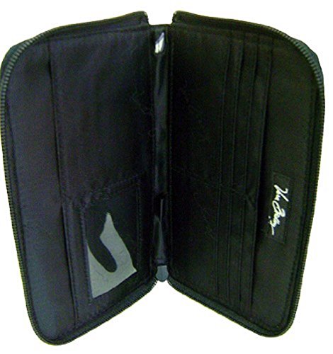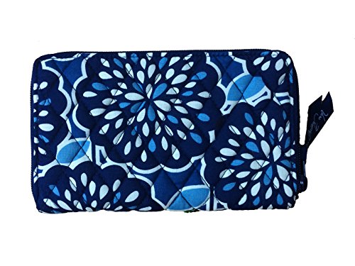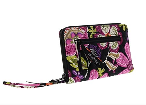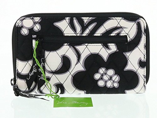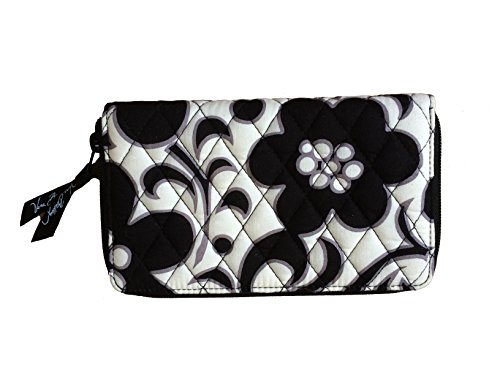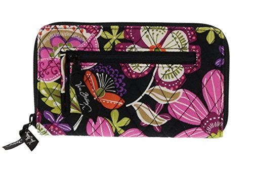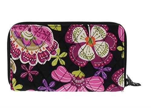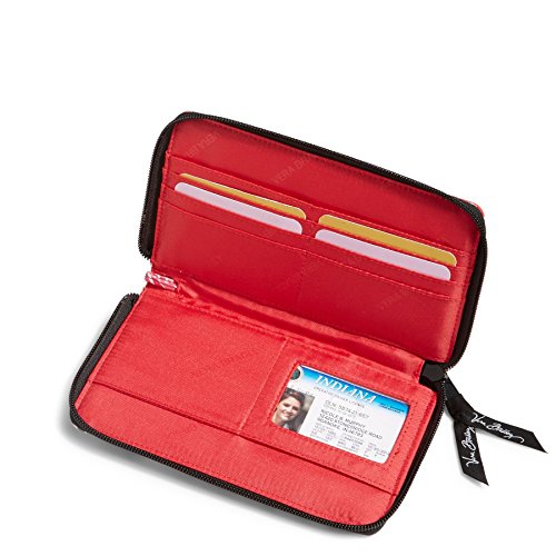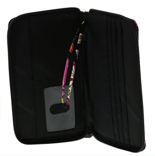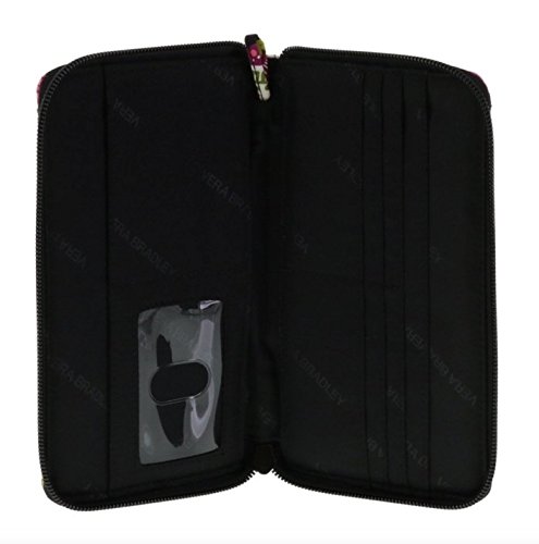 Binding : Apparel Product Description Vera's Zip-Around Wallet is made of soft quilted fabric on the outside with a custom Vera Bradley print logo fabric on the inside. It features 7 card slots, a clear ID slot, and two full length bill slots. There is also a gusseted zippered coin pocket on the back and a wristlet strap that can be tucked inside. It measures approximately 7.75 inches (L) x 4.75 inches (H) x 1 inch (W). The location of the pattern varies with each wallet. Spot clean with a damp cloth and mild soap. 0