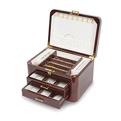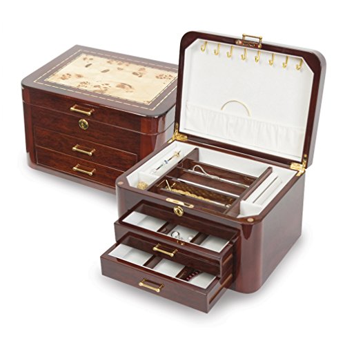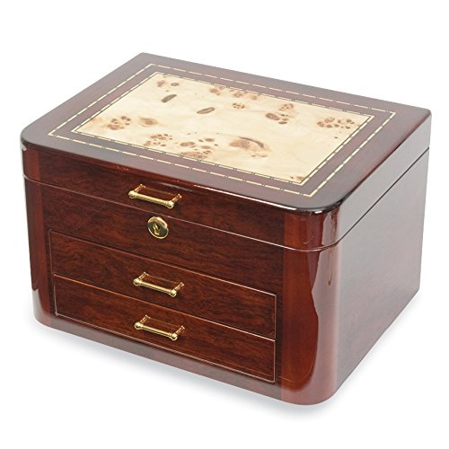 Burgundy Bubinga Wood Veneer w/2 Drawers Jewelry Box