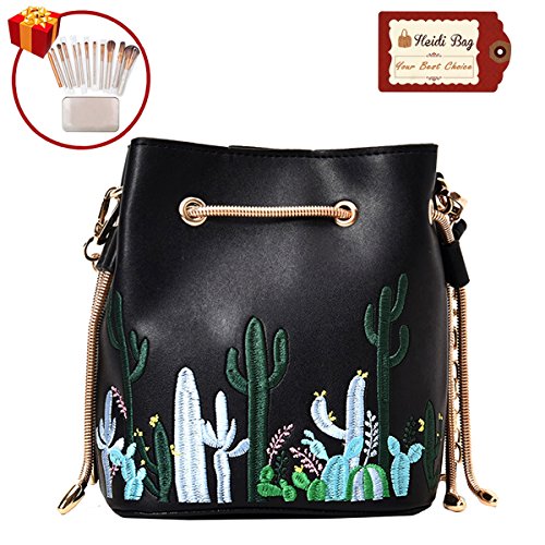 - Leather Buckets purse cactus embroidery chain bag