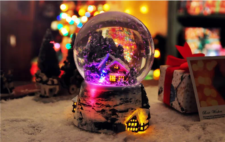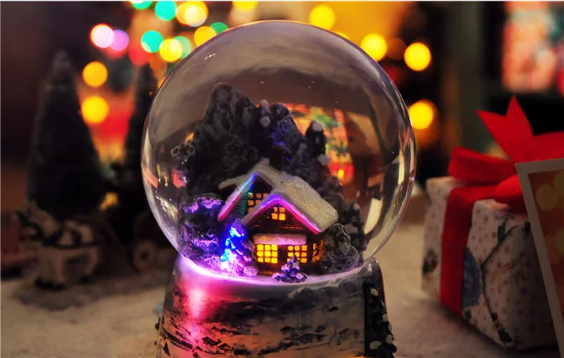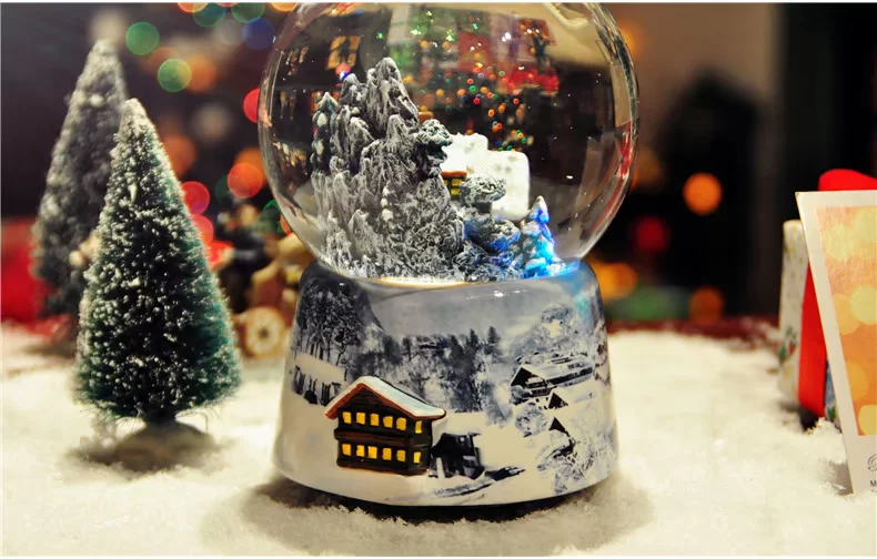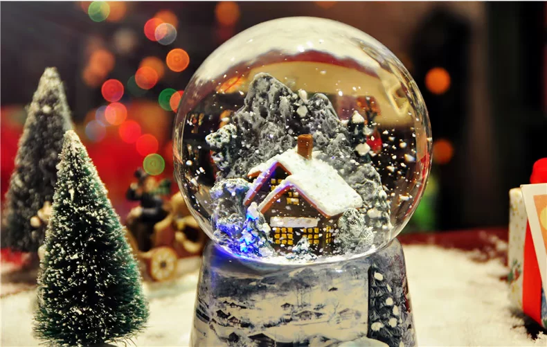 雪山小屋水晶球  轻轻摇动内景飘雪哦