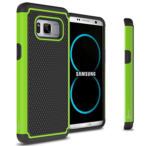 -. Title : CoverON HexaGuard Series Samsung Galaxy S8 Plus Case, Heavy Duty Hybrid Phone Cover with Basketball Grip Armor Plate - Green on Black