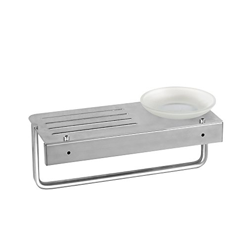 CRW Brushed Stainless Steel Storage Shelf with Towel Holder clothes Rack with Soap Dish Organizer for Bathroom Kitchen Wall Mounted KF30304