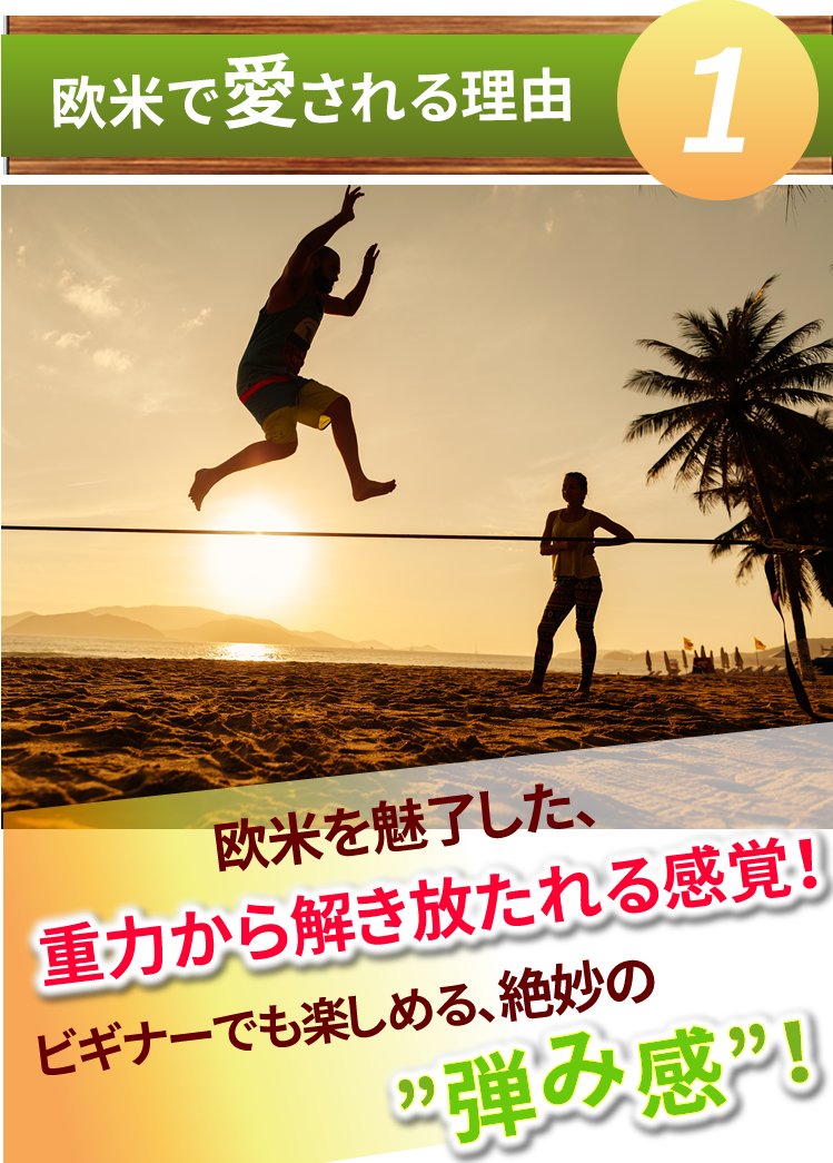 It is a sport that walks like a tightrope over the belt of about 5 cm in width and jumps and jumps and it is a sport to enjoy.