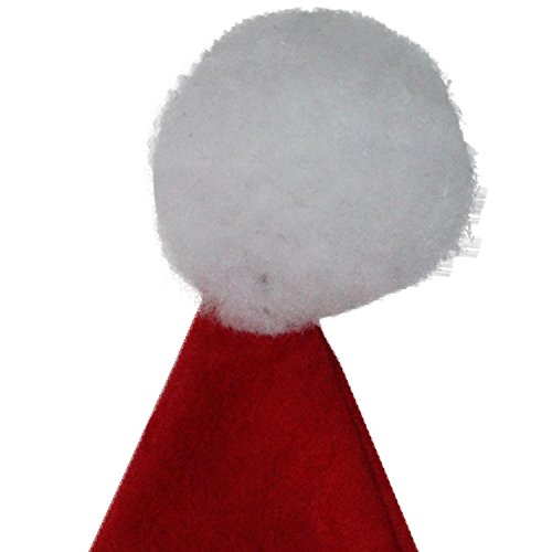 Product Description Classic Santa hat that features a traditional red body with white brim White plush pouf sits on top of the hat Care instructions: spot clean only Overall dimensions: 17.5"H x 12"W Brim size: 23.5" (medium) Material(s): polyester One size fits most 0
