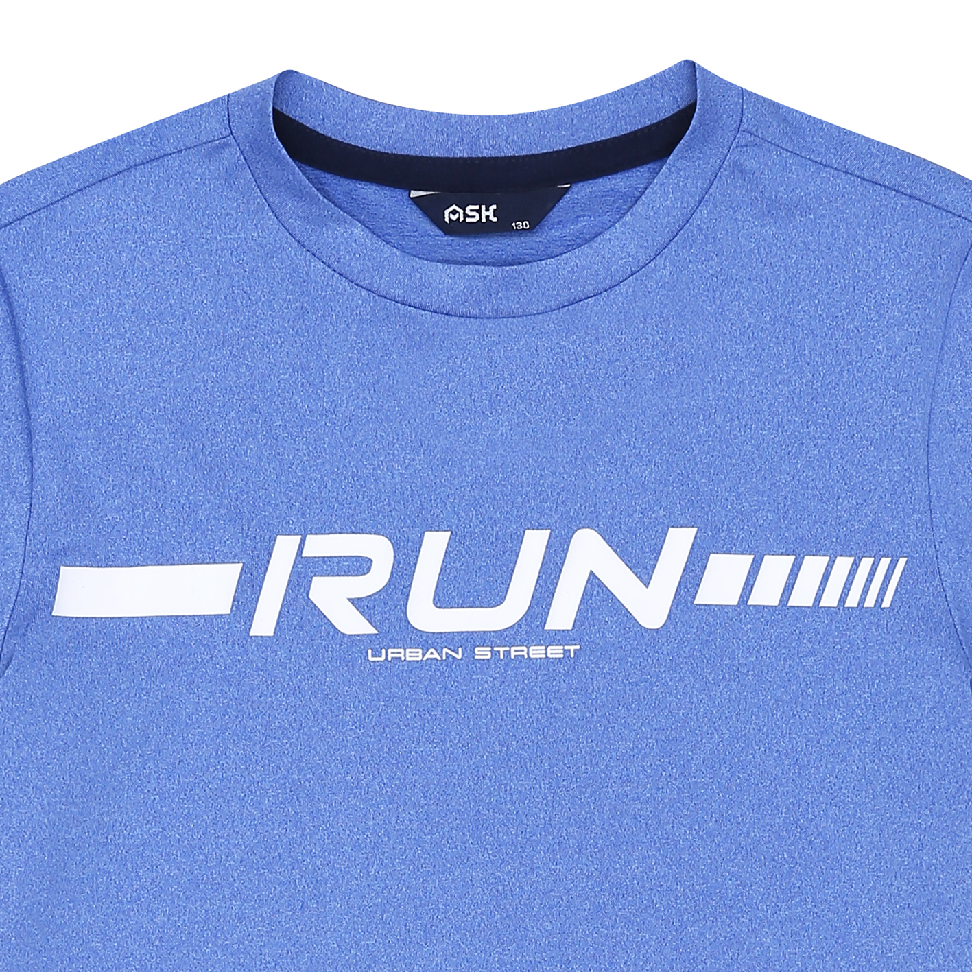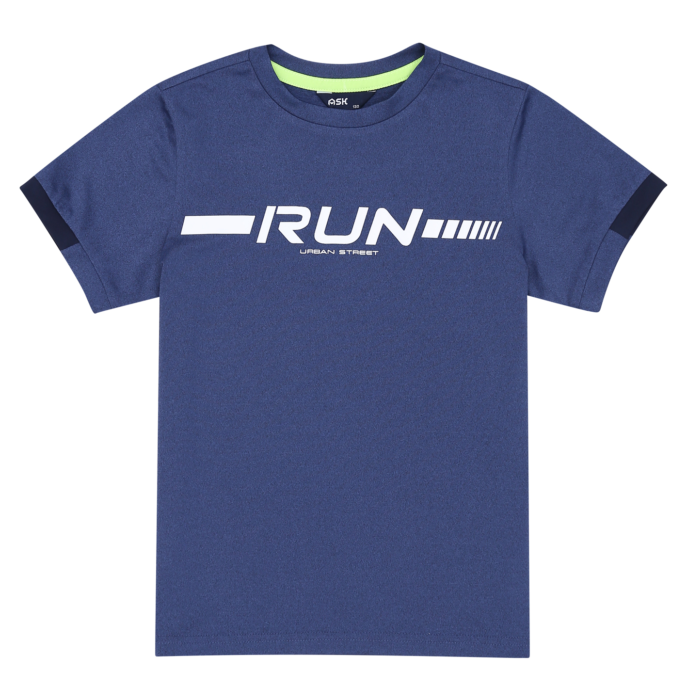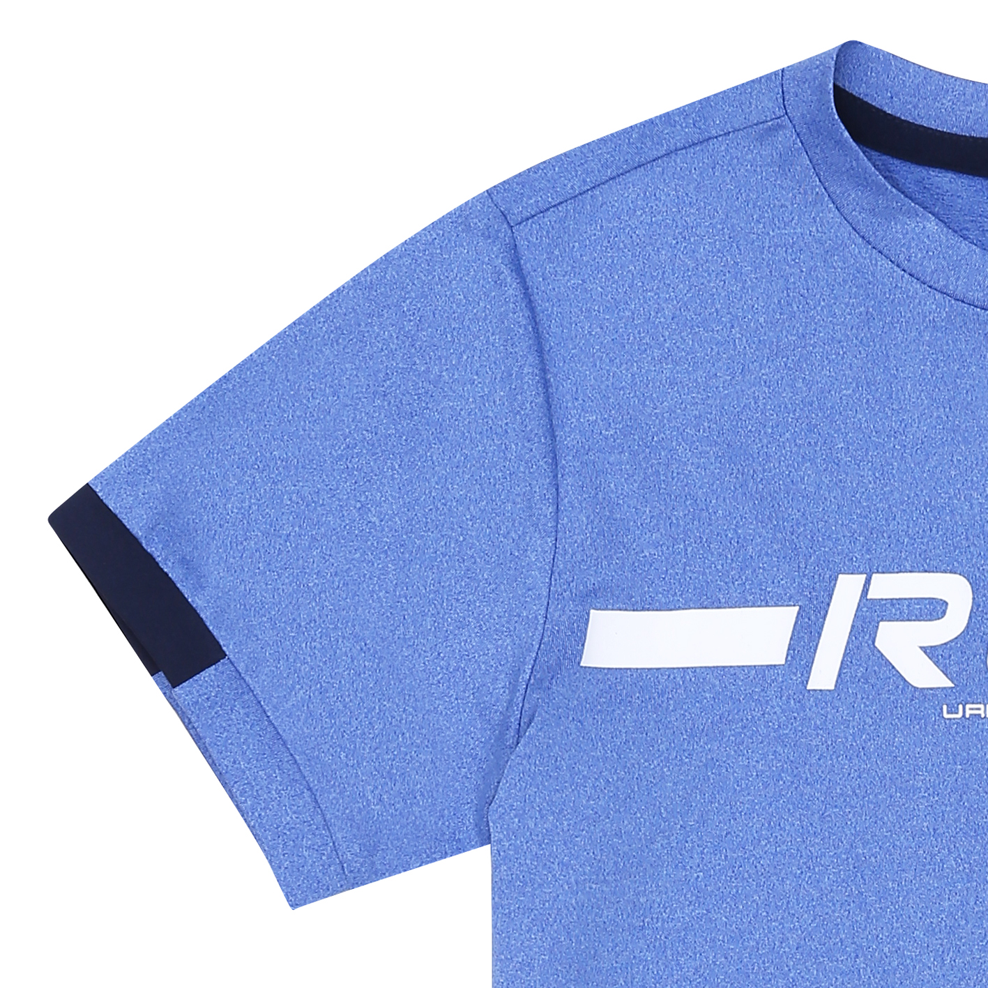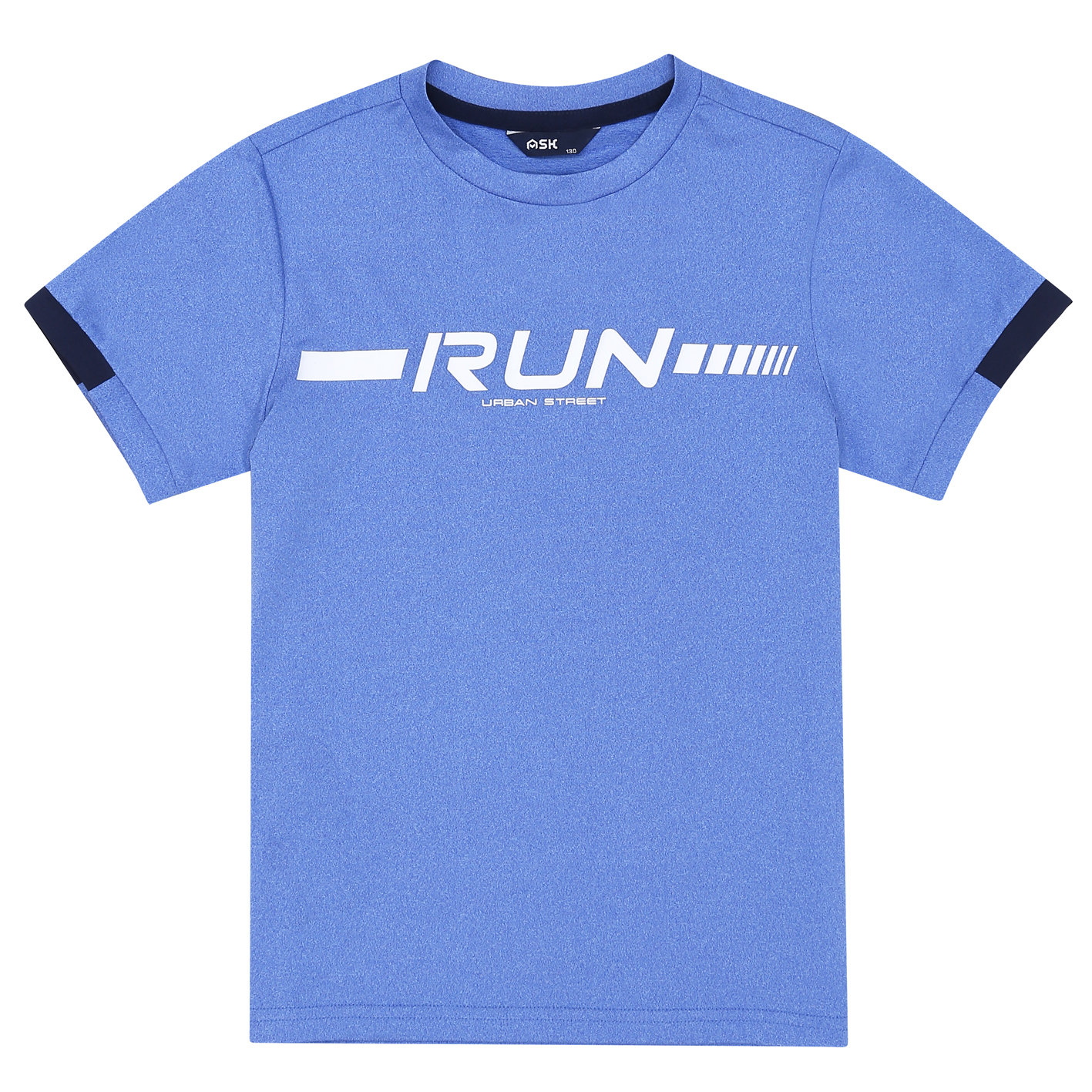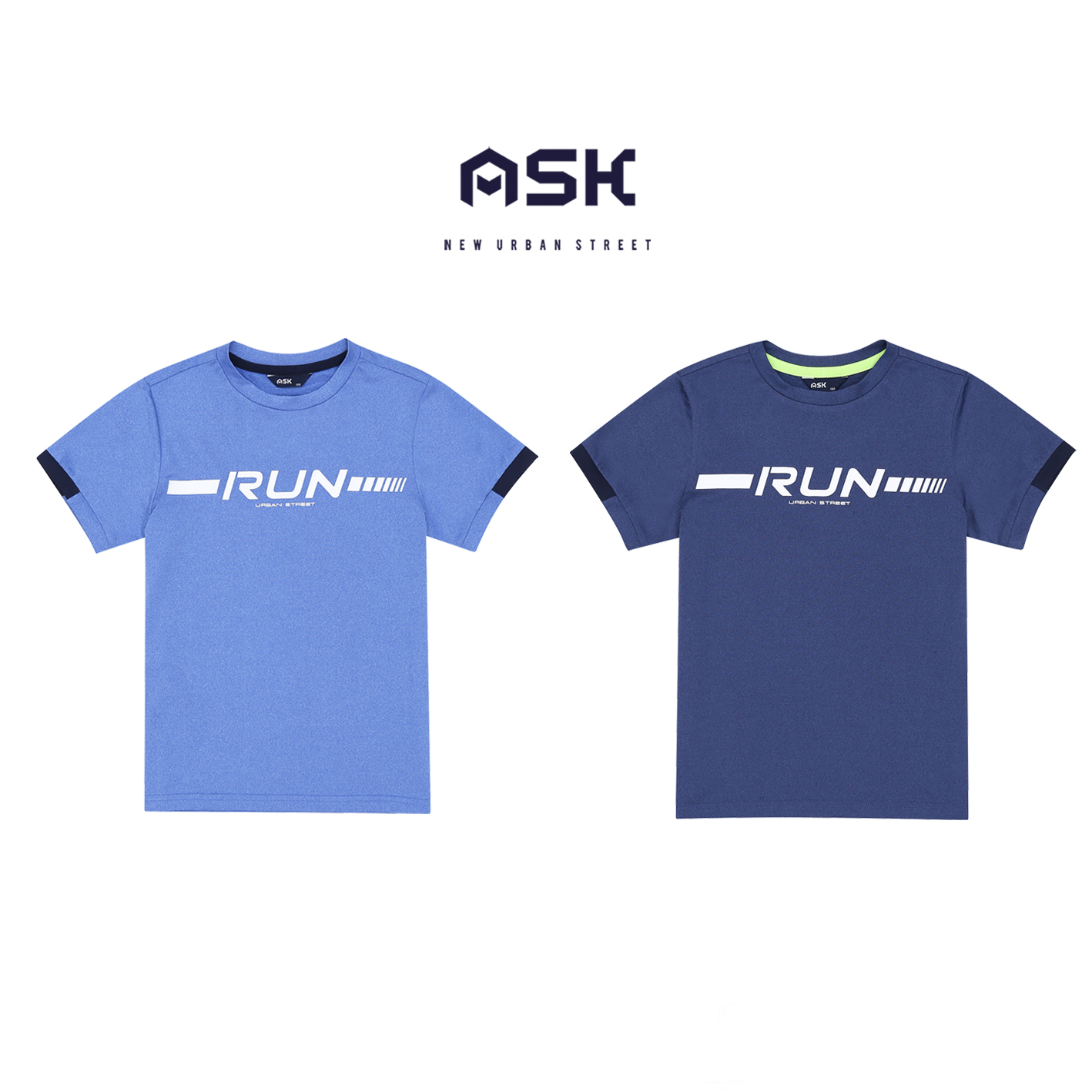 폴리싱글스판 소재의 기능성 티셔츠.        소매 밑단 배색으로 포인트를 주고, 가슴에 스포티한 나염을 더한 전략 아이템. 2color진행.