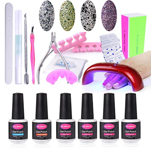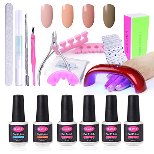 -. Title : CLAVUZ Nail Starter Set 4pcs Soak Off Gel Nail Polish Kit with 9W UV LED Nail Light with Top and Base Coat plus Professional Nail Art Manicure Tools DIY at Home