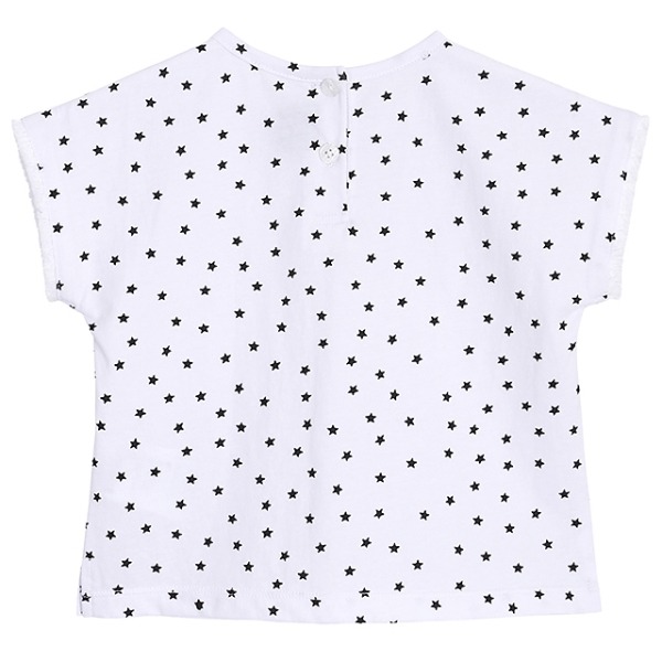 반짝반짝 별프린트가 찍힌 티셔츠예요~살짝 여유있는 핏에 소매끝 수술테이프장식으로 하나만 입어도 멋스러워요~핫팬츠와 코디하여 바캉스룩으로 추천드려요! NY_네이비, WH_화이트