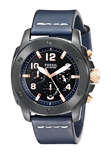 Fossil Men's FS5066 Modern Machine Black Stainless Steel Watch with Blue Leather Band
