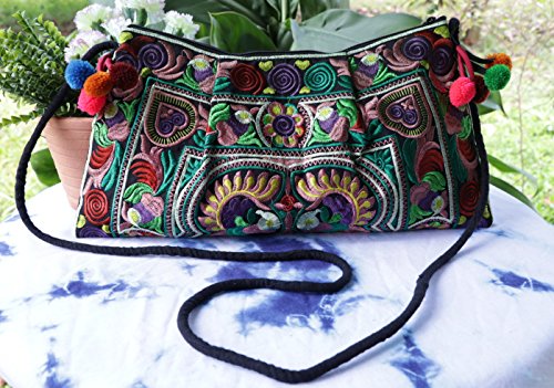 -. Title : NaLuck HMONG Bag Swingpack Peacock Hill Tribe Ethnic Embroidered Crossbody Hippie Hobo Shoulder Purse