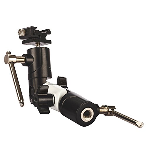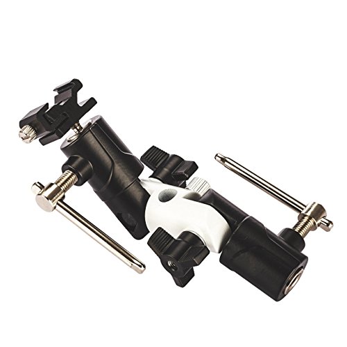 The swivel bracket with 180° double-end adjustment supports any angle of flashing, and fits for holding the umbrella or softbox on the light stand and allows for flashing from horizontal / vertical or at the middle and low position.