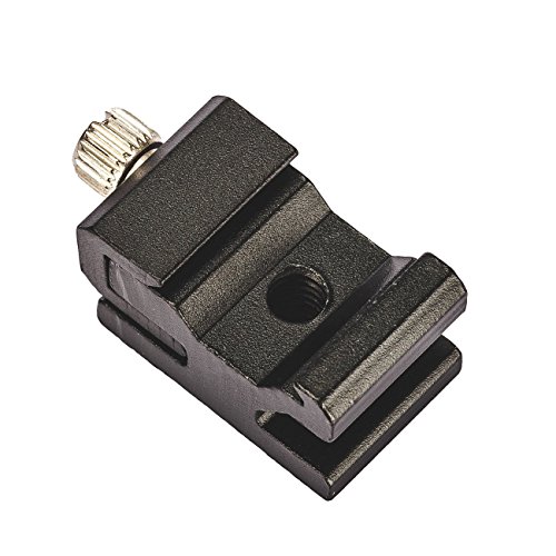 The shoe mount adapter is equipped with standard hot-shoe (width adjustable). With 1/4" tripod thread hole and adjustable knob compatible with most flashes or tripods.