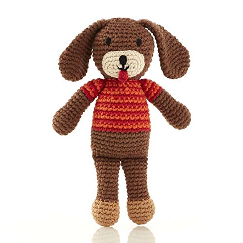 This highly detailed, cute Boy Dog Rattle has a cute expression and floppy ears. Just the right size for little hands to grab and shake. Hand made using super soft 100% cotton yarns. Pebble products are made entirely by hand with natural materials and as such there will be slight variations in size, color and design in line with the unique nature of this product. Materials: 100% cotton with 100% polyester fill. Care instructions: machine washable and can be tumble dried on a low setting. All Pebble products are made in Bangladesh by the extremely talented and capable artisans at Hathay Bunano, helping women out of poverty and putting smiles on faces worldwide! Certified and Guaranteed Fair Trade by the World Fair Trade Organization.Feature