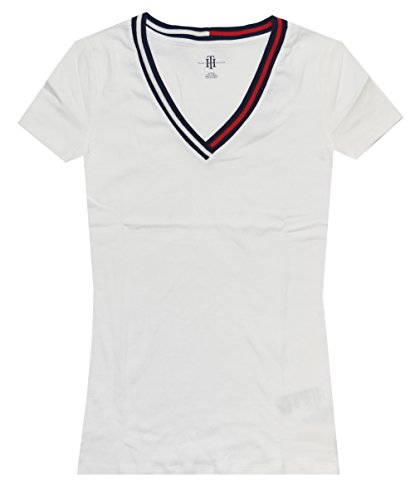Tommy Hilfiger Women Signature Short Sleeve V-neck Logo Tee (XL, White)