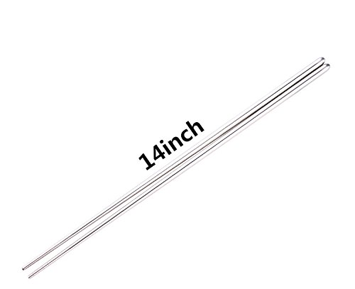 OPACC Pair 14 inch Stainless Steel Long Chopsticks for Hot Pot Frying Noodle, Super Strong Lightweight Professional