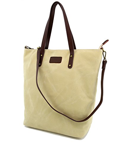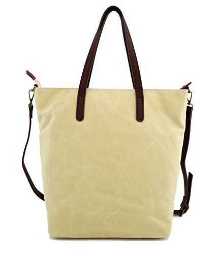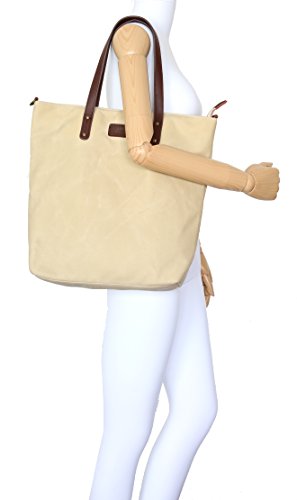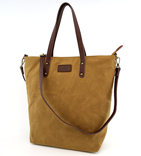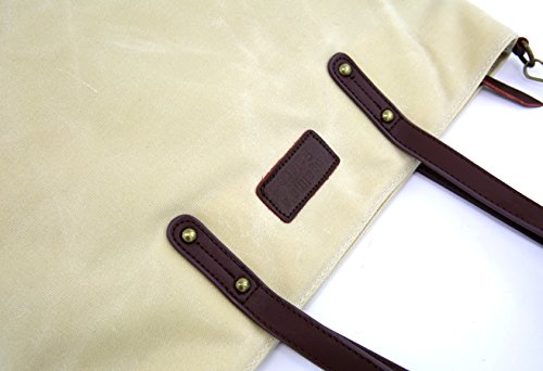-. Title : Angelina's Palace Hand Made Wax Canvas Leather Shoulder Bag Waterproof Tote Bag Metal zipper Handbag