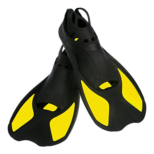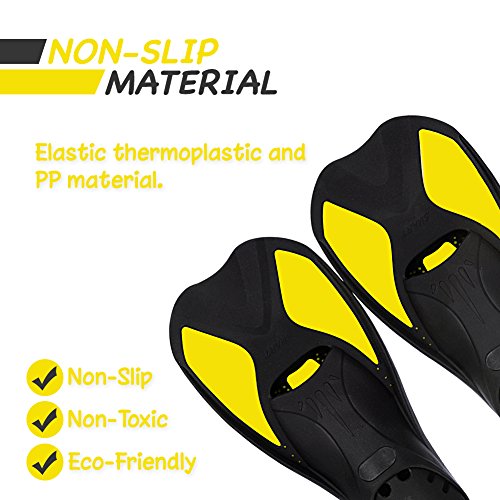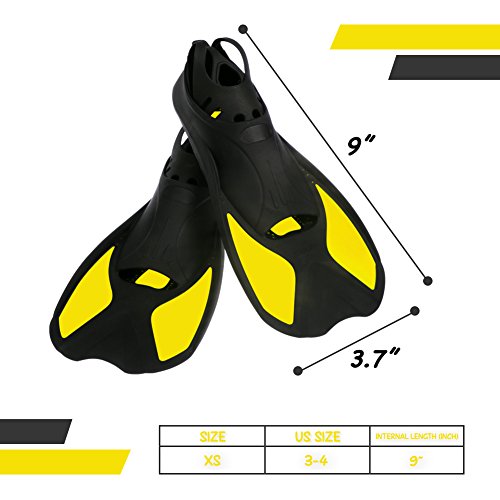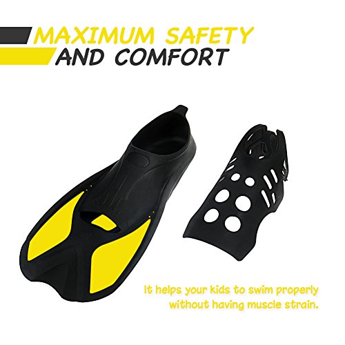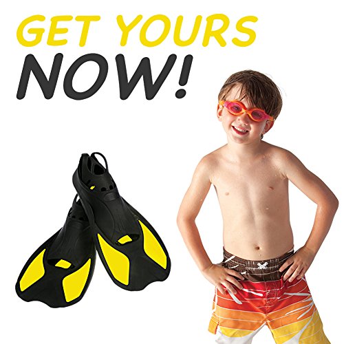 Kids Swim Fins | Short Floating Training Swimming Fins for Children Boys and Girls Size 34-36 (US size 3-4) | Thermoplastic Rubber Pool Fins for Diving Snorkeling Watersports | Yellow | 749.8