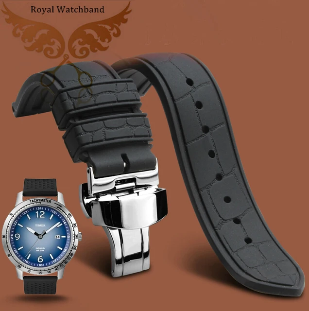 | [해외] 20 미리메터 22 미리메터 블랙 다이빙 실리콘 고무 시계 밴드 스트랩 나비 시계 버클 |