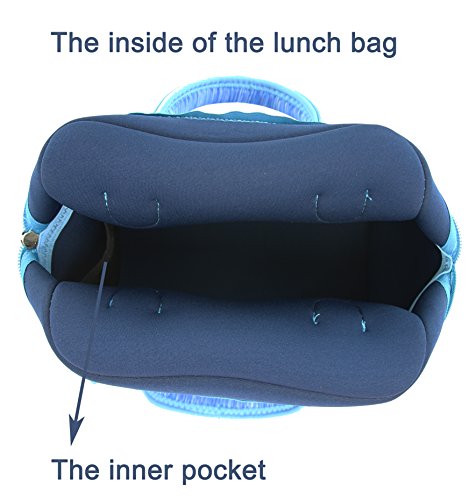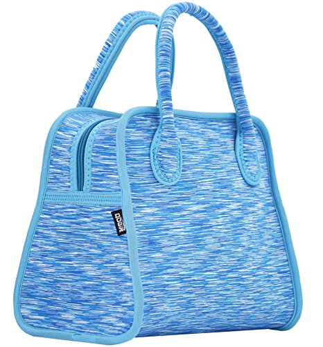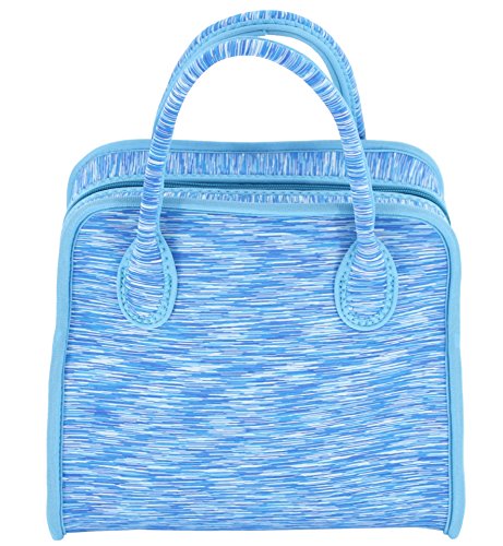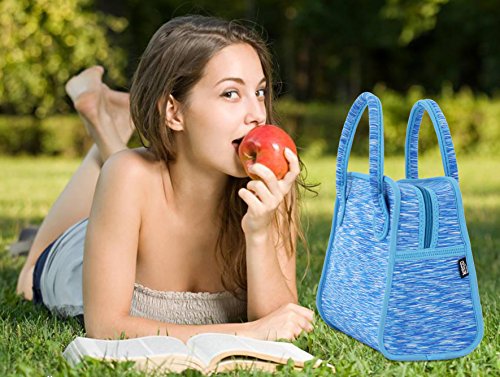 Neoprene Lunch Bag Tote by QOGiR - Large 10.5" x 14" x 6.5" inch(Fits Containers up to 10"Lx9”Hx6"W) - Keeping Food Cold (Warm) Appr 4 Hours~Blue