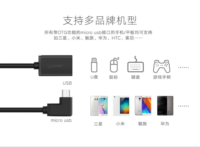 绿联 OTG线 otg连接线三星小米魅族手机 micro USB转接 OTG数据线