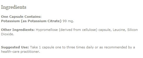 Product DescriptionPotassium Citrate (99mg) 90c - Potassium is a vitally important mineral in the cell.0