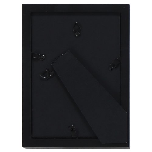 - Feature : Matte black finish / Vertical and horizontal hanging options, easel stand for table top display / Materials: wood, glass / Holds one 5x7" photo / Simple to load, removable back panel