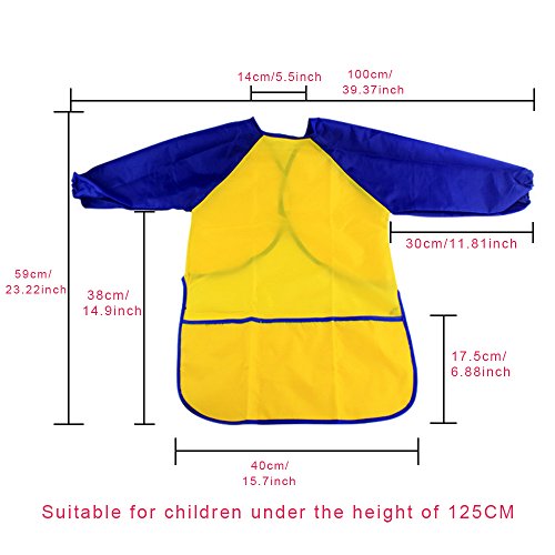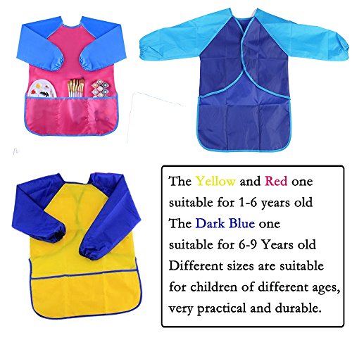 Package Included: 3 x Kids Art Smocks(There Colors,Sent In Random) The Yellow and Red one suitable for 1-6 years old ,The Dark Purple one suitable for 6-9 Years old children.Different sizes are suitable for children of different ages, very practical and durable.