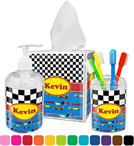 -. Brand : RNK Shops -. Color : Blue -. Feature : YOU WILL RECEIVE AN EMAIL WITH A LINK TO CUSTOMIZE YOUR ORDER WITHIN 1 BUSINESS DAY / Custom P.R.Inted with Your Design / 3 piece set / Inserts P.R.Inted on premium gloss media / Vibrant, colorful design -. Label : Mom Innovations -. Manufacturer : Mom Innovations -. MPN : mi-bath-acc-bundle+Racing-Car -. PartNumber : mi-bath-acc-bundle+Racing-Car -. ProductGroup : Home -. ProductTypeName : HOME_BED_AND_BATH -. Publisher : Mom Innovations -. Studio : Mom Innovations -. Title : Racing Car Bathroom Accessories Set (Personalized)