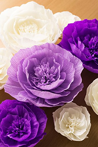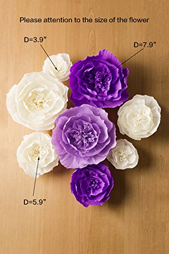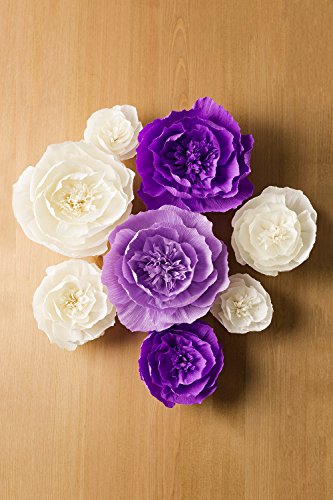 Paper Flower Decorations, Large Paper Flowers (Purple, Beige, Lavender, Set of 8 ), Crepe Paper Flower for Wedding Backdrop, Nursery Wall Decorations, Archway Decoration, Baby Shower