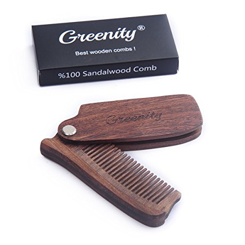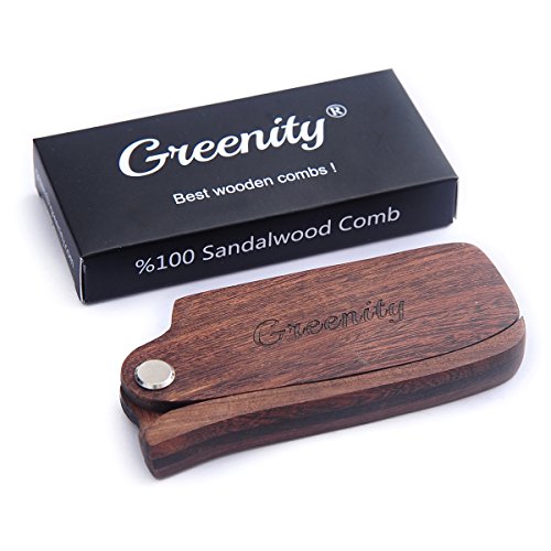Greenity Best Folding Black Gold SandalWood Beard and Hair Anti Static Natural Wooden Comb