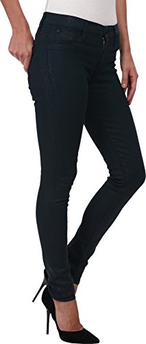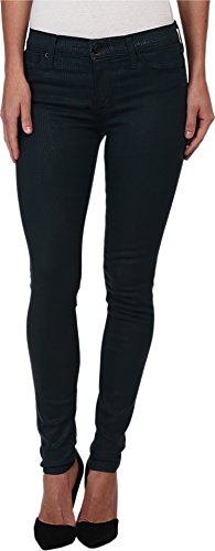The streamlined Nico jean sports a flattering mid rise and super skinny leg. Silver plaid print is presented on teal 11 oz stretch cotton-poly denim. Five-pocket design with faux front scoop pockets. Tonal topstitching. Logo rivet on coin pocket. Logo label at the right rear pocket. Belt loop waistband. Zipper fly and button closure. 91.5% cotton, 6% polyester, 2.5% Lycra®. Machine wash cold, lay flat to dry. Made in the U.S.A. and Imported.