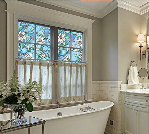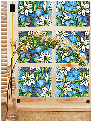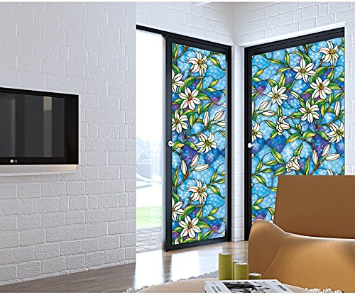 Bloss Vinyl Static Cling Window Shade Blue Orchid Privacy Stained Glass Decorative Window Film 17.7 x 78.7 Inches