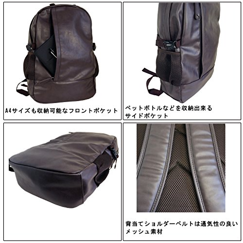 -. Feature : シンプショルダー部分や背当てのクッション性が高くかつぎやすいリュックサックです。PUレザーながら、高品位なため大人の雰囲気のリュックサックです。大人のリュックサックです。 / サイズ:横約30cm、高さ約41cm、マチ幅12cm。大容量です。 / ポケット:外側1つ、サイドに2つ。内側小さいポケット2つ、タブレット、PCケース入れ1つ。 / 素材:PUレザー / 原産国:中国