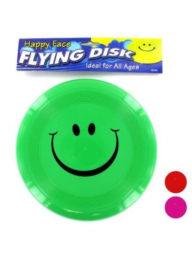 ReleaseDate : 2017-12-01 Studio : Kole Imports - Crafts Publisher : Kole Imports - Crafts Binding : Toy Product Description Great for backyard fun, the beach, the park and more, this cheerful Smiley Face Flying Disk features a colorful glider with a smiley face design in the middle. These gliders provide a great recreational sport that anyone can play. Comes in assorted colors. Measures approximately 9" in diameter. Comes packaged in a poly bag with a header card. 0