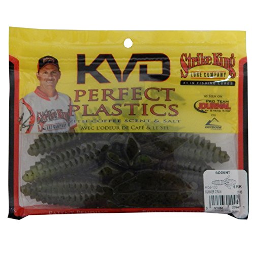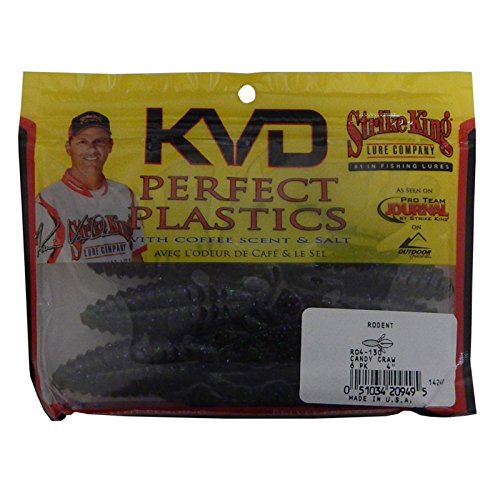 ReleaseDate : 2010-08-02 Studio : Strike King Lure Company Publisher : Strike King Lure Company Binding : Sports Product Description Strike King's Perfect Plastics are the softest, saltiest plastic lures ever produced and feature Strike King's exclusive coffee scent (patent pending). These baits contain the world's best blend of soft plastic ingredients! This allows use of large amounts of salt yet keep the bait soft, pliable and fishable. Coffee adds to the appeal as it masks human scents and oils and causes added bites and longer hold times which increase your hook-up chances. The Rodent will search them out in heavy cover and is 4 inches long. 0