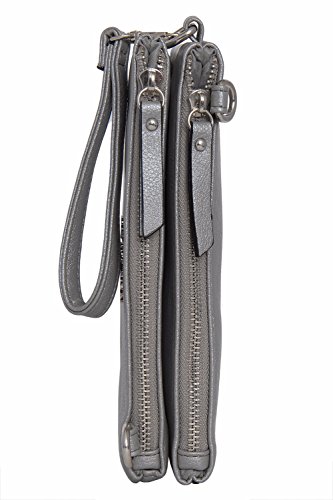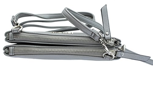 Rich faux leather Look . 8" X 4.5" Double zipper Compartments to separate nicely you stuff Use with Beautiful Crossover Shoulder Strap or as a Wristlet Brand : Kenneth Cole REACTION EAN : 0077979466168 Package Dimensions(LxWxH) : 23x18x6cm ; 295 g